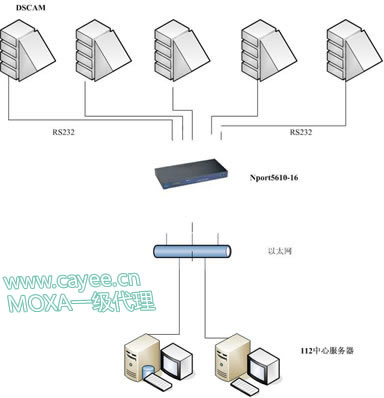 現(xiàn)在的技術(shù)日新月異,單單的C320卡片已經(jīng)滿足不了龐大的電信ADSL監(jiān)測(cè)網(wǎng)的需要了,在112系統(tǒng)升級(jí)項(xiàng)目中要求:要將每臺(tái)DSCAM都聯(lián)入網(wǎng)絡(luò)中。因此,我們把摩莎NPORT5610-16帶入112系統(tǒng)中,替換下C320卡片。